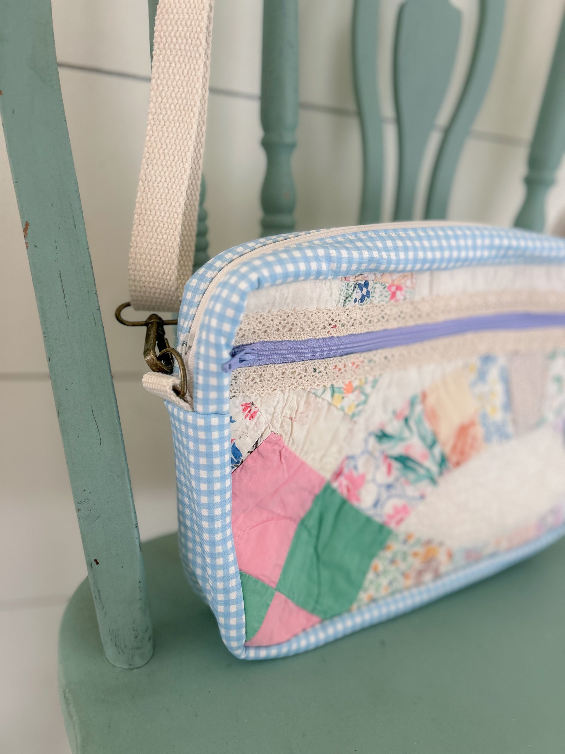 This Handmade Bag is the perfect bag for your Bible. It is made with vintage quilt pieces and lined with a coordinating fabric. It is the perfect gift for a mama who has her hands full on Sunday mornings and is great for kiddos and teenagers, too.