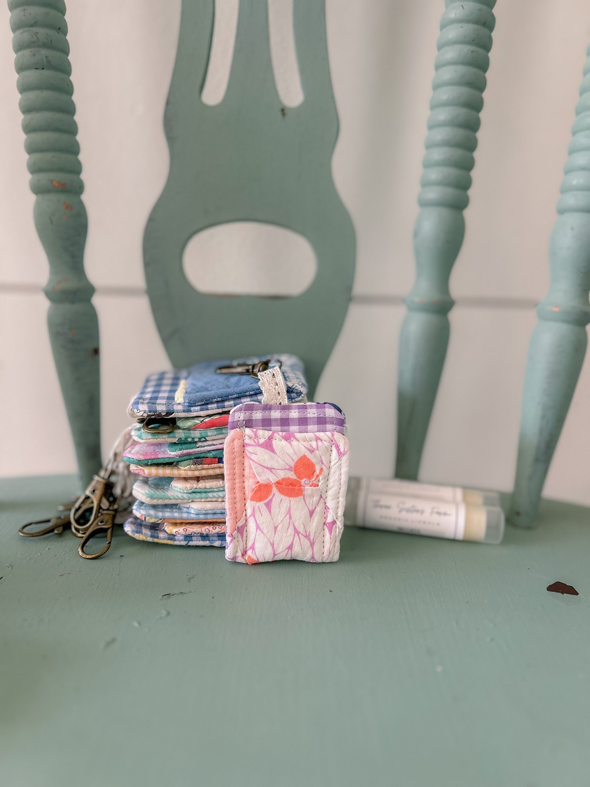 Handmade Vintage Quilt Lip Balm Holder Keychain